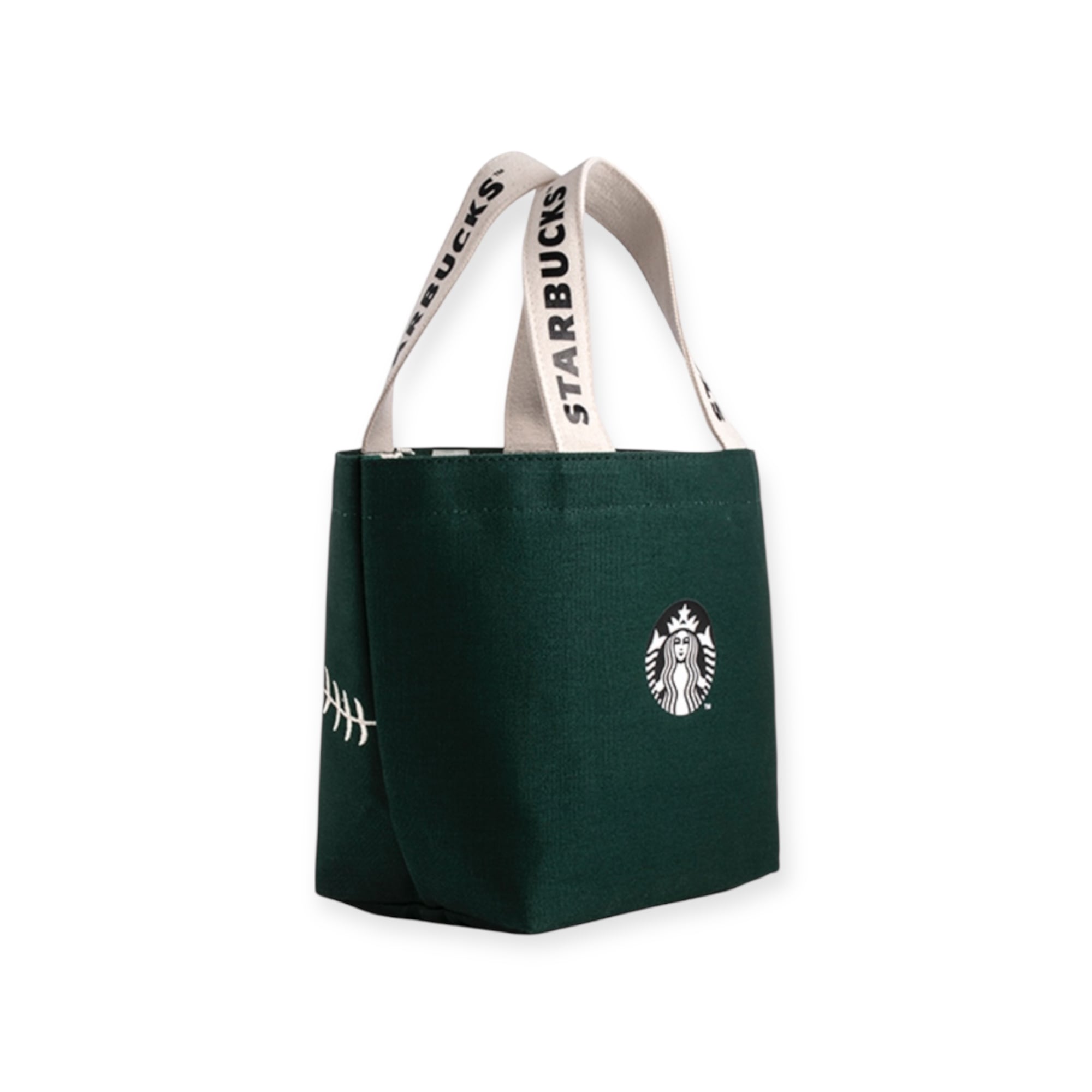 ロゴ入りの持ち手や、サイドにさりげなくあしらわれたスターバックスのロゴもポイントです。
