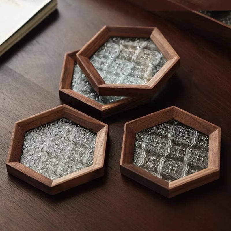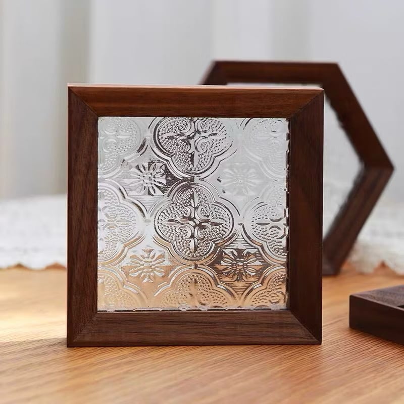 アンティーク調のガラス模様に、あたたかみのある木枠を組み合わせたデザインは、置くだけで食卓やお部屋をぐっとお洒落にしてくれます。