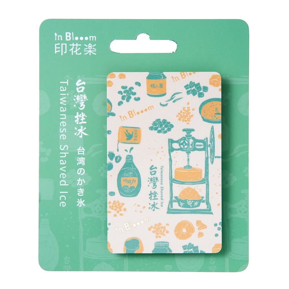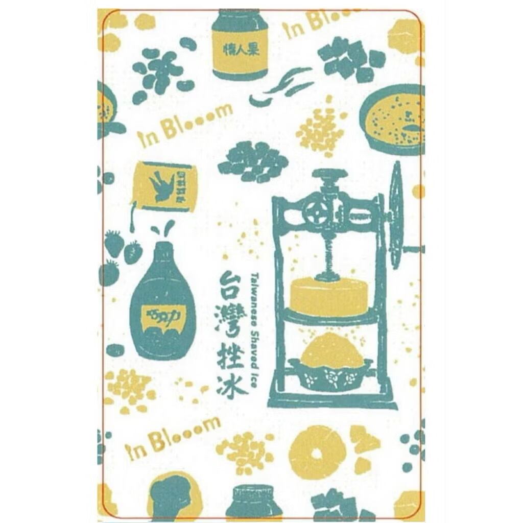 夏の風物詩・挫冰をモチーフにした爽やかな一枚。フルーツや蜜豆、かき氷機などが描かれ、台湾の涼やかな甘い時間を感じられます。