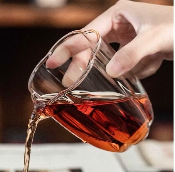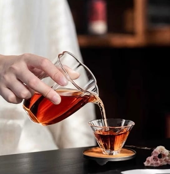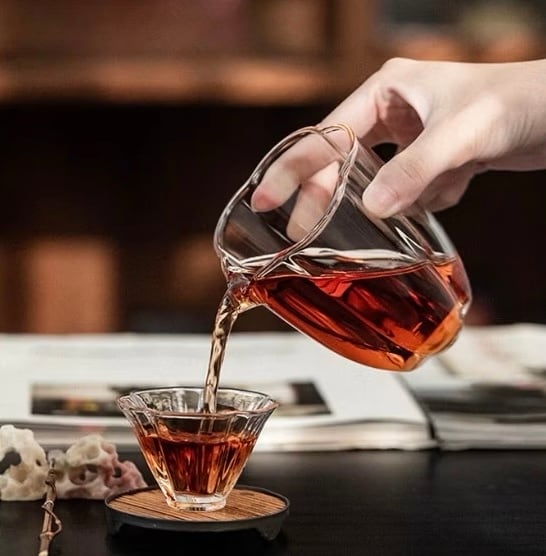 光を受けるたび、ガラスの縁がキラキラと輝き、お茶の色をより美しく引き立てます。