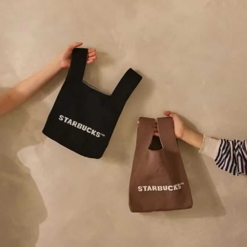 スターバックスのロゴがさりげなく映える、針織素材のニットショッパーバッグ。