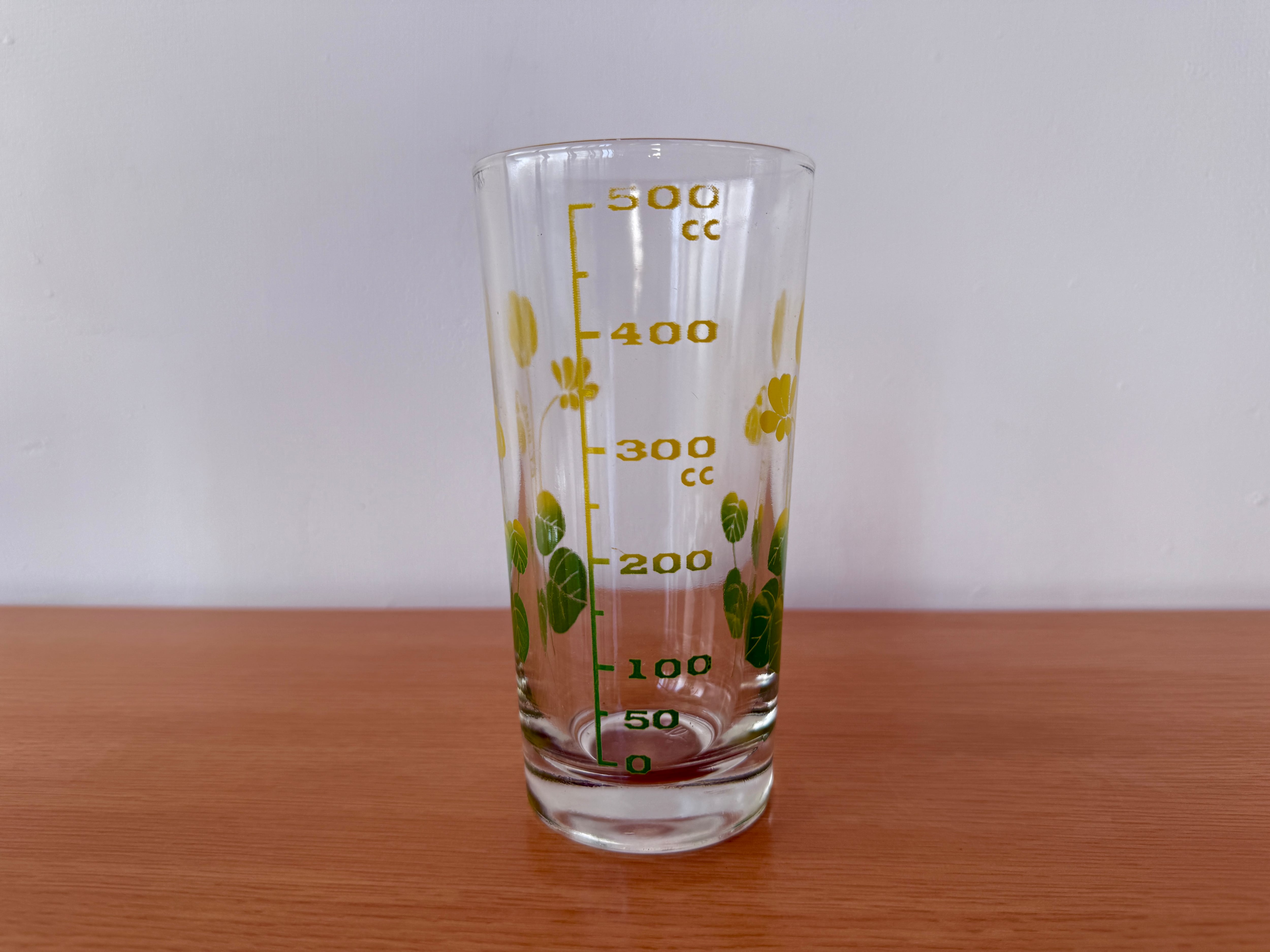 側面にメモリがついたレトロ可愛いパパイヤミルクグラスです。