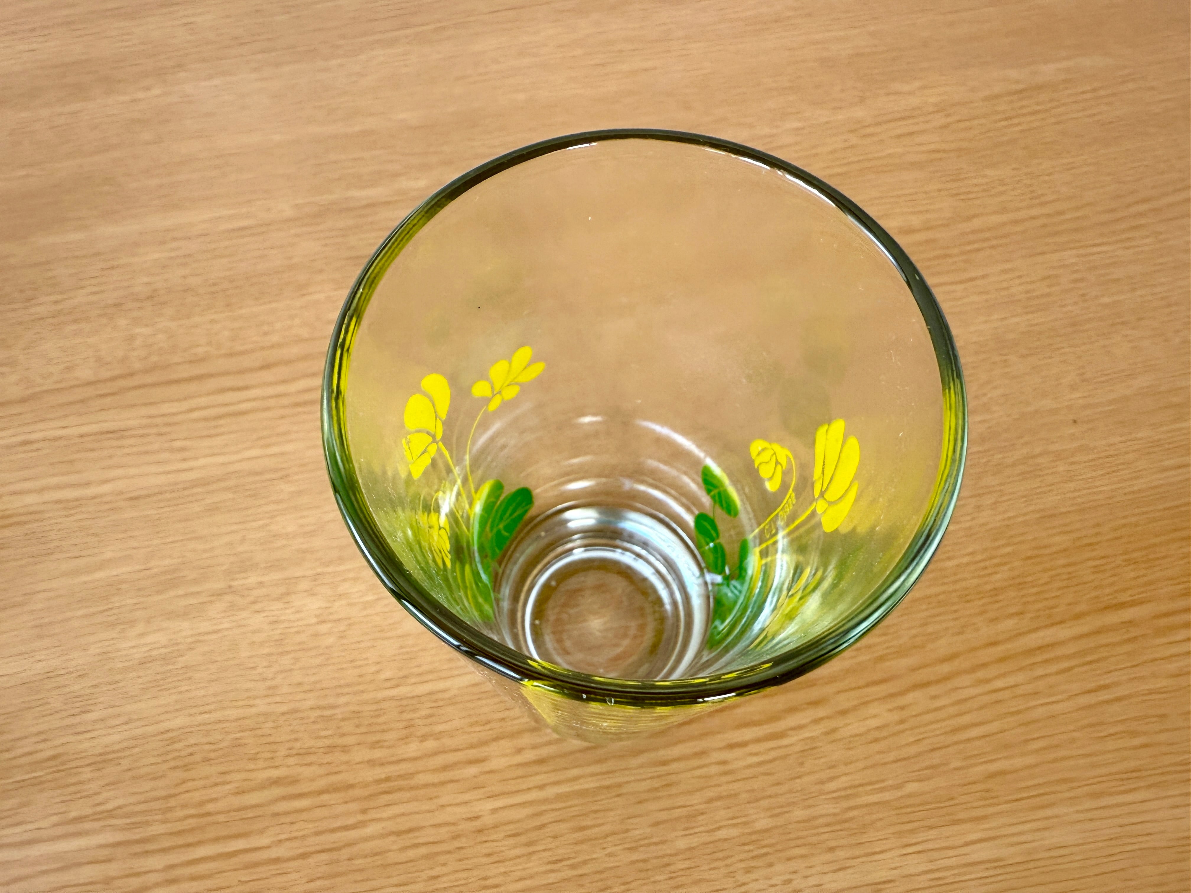 花柄のデザインが昭和レトロをも感じさせるグラスです。