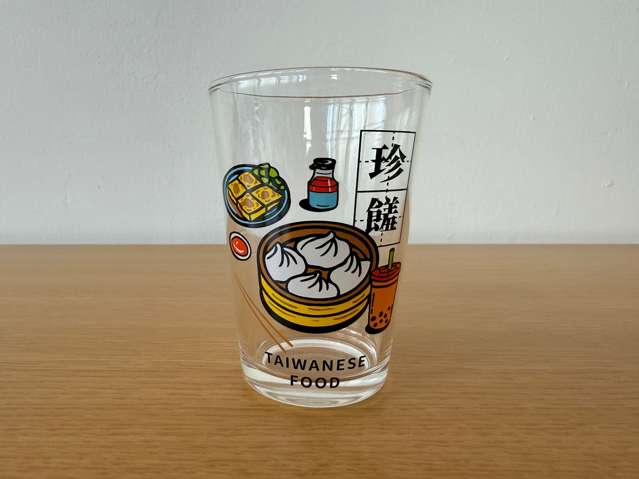 シンプルなフォルムのグラスに、どこか懐かしく可愛い台湾デザインが映え、ビールはもちろん、ジュースや台湾茶にもおすすめ。