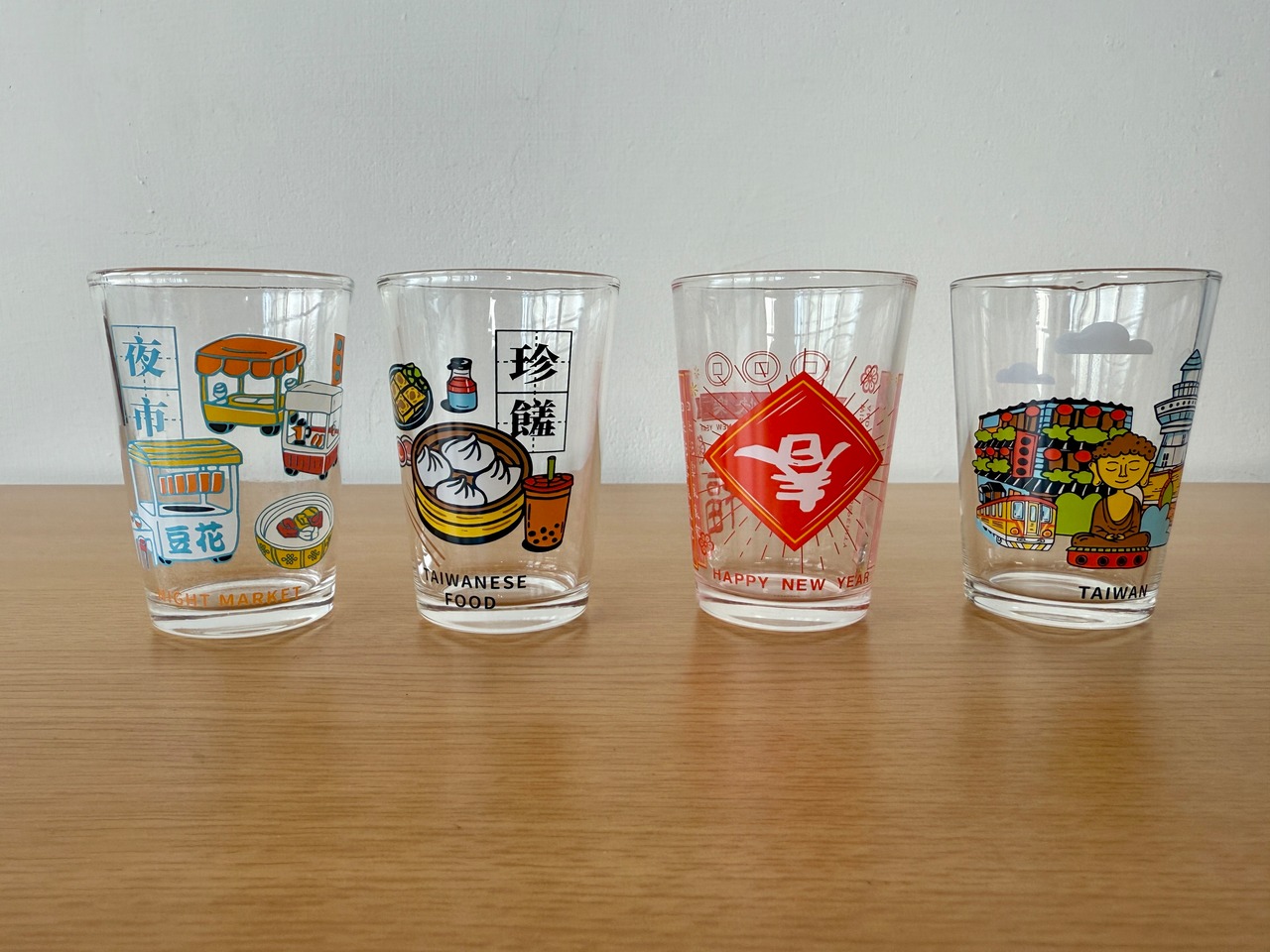 夜市、台湾グルメ、旧正月、台湾の街並みなど、それぞれ異なるテーマを楽しめる全4柄です。