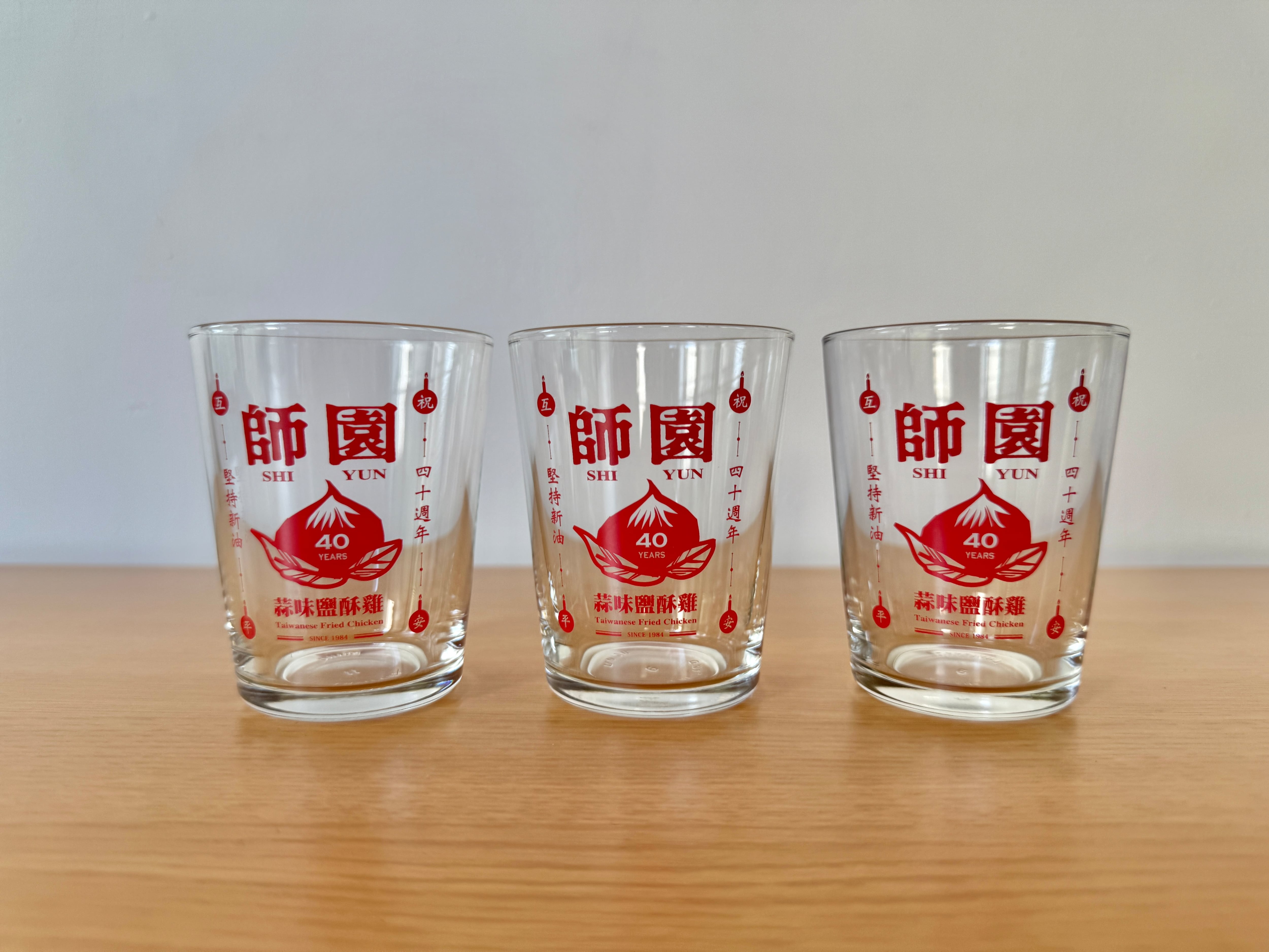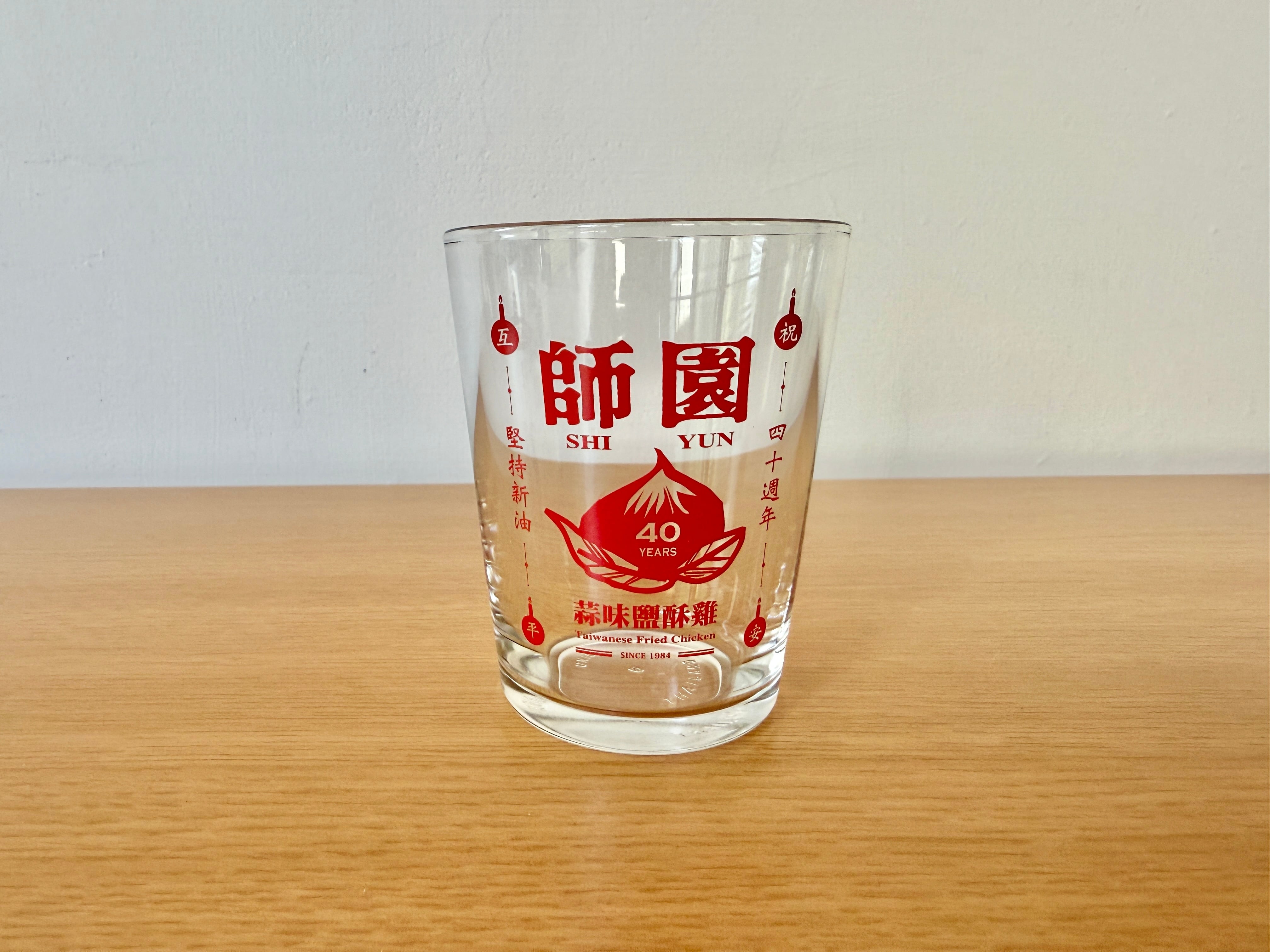 台湾の人気唐揚げ店「師園(シーユエン)」の世界観をそのまま閉じ込めた、レトロで愛らしいデザインのビールグラス。