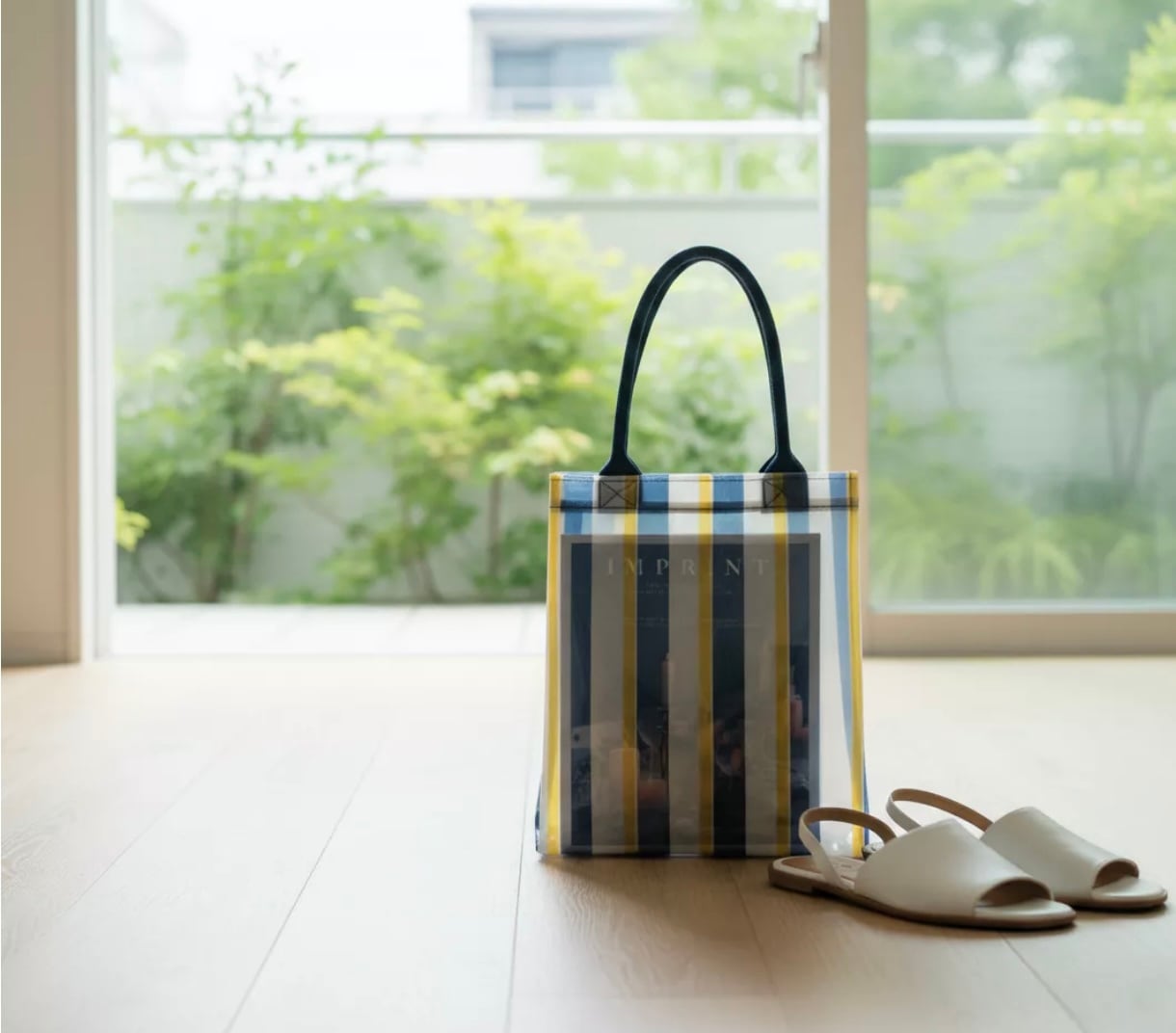 従来の形よりもスッキリとした縦長サイズで、底やマチがないフラットな形なので、雑誌や書類、タブレットなどを入れても形が崩れず、スタイリッシュに持ち歩けます。