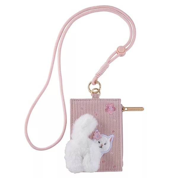 淡いピンクカラーに、桜モチーフと白い猫のしっぽ。