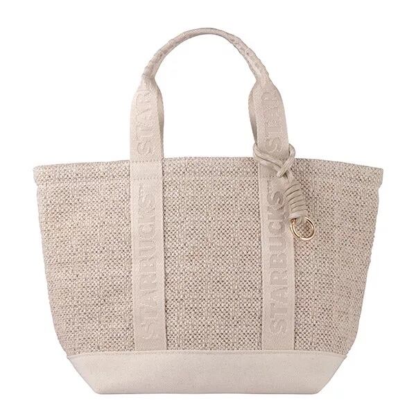 やわらかなナチュラルトーンに包まれた、上品で洗練された台湾スタバのトートバッグ。