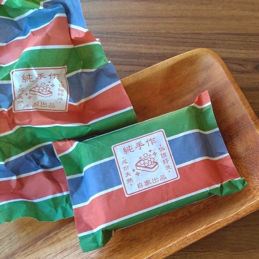元々石鹸をパッキングする包装紙でしたが、これをプレゼント用のラッピングに使ったら可愛いんじゃないか思いました!