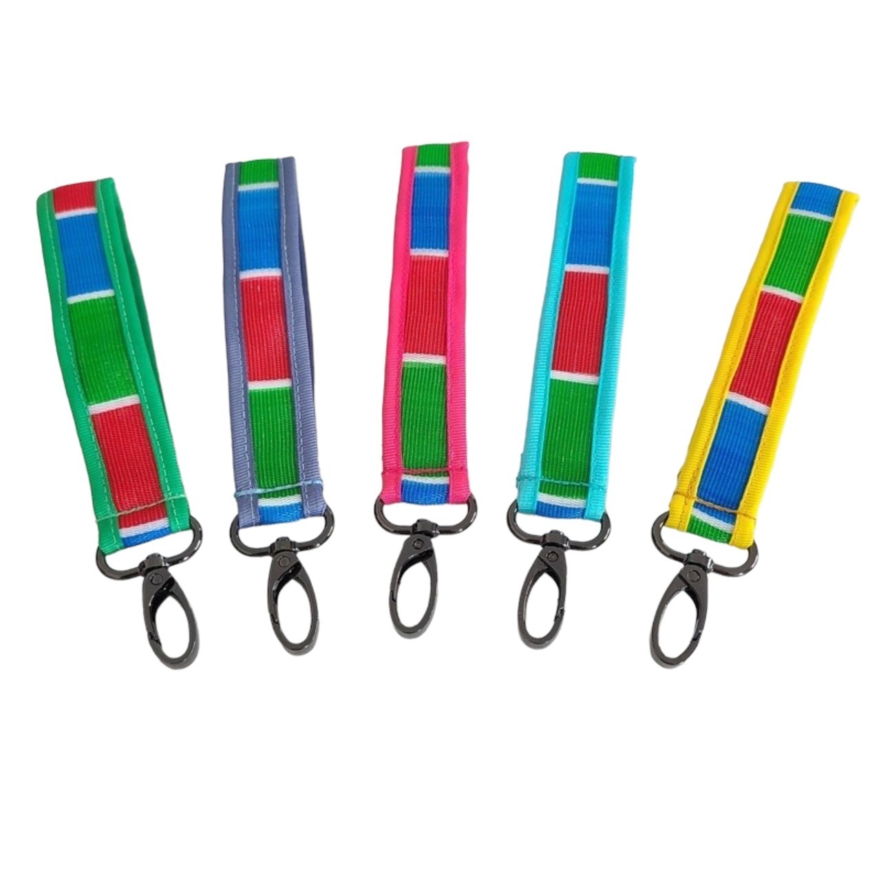 このストラップキーホルダーのカラーはグリーン、イエロー、ピンク、パープル、ティファニーブルー の5色あります。