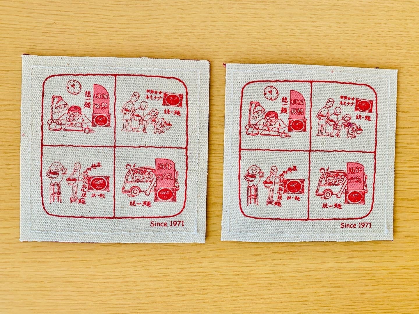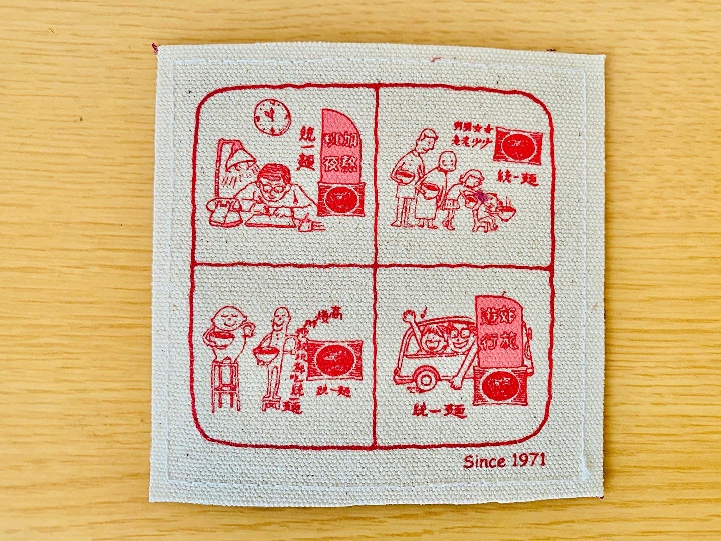 台湾で人気のインスタント麺「統一麺」と台南の老舗帆布店「合成帆布行」のコラボコースターです。