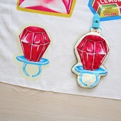 そのまま生地を使っても良し、駄菓子の絵を忠実に裁断してミニバッグやポーチを作ると更に可愛さ満載です。
