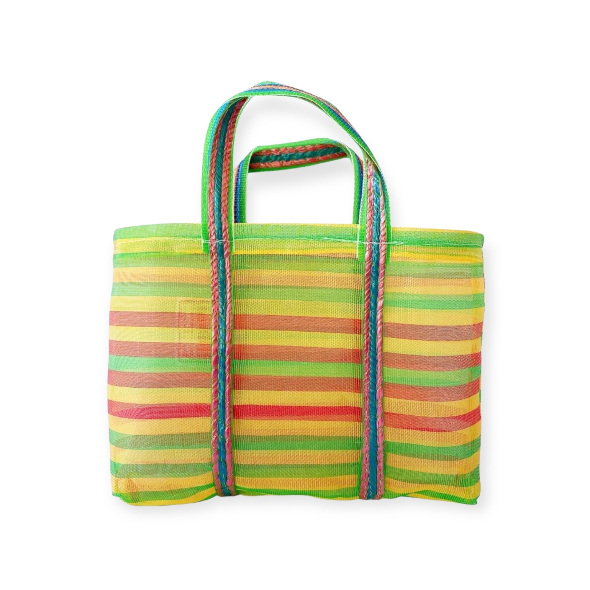 (1号)イエローx グリーンxレッド柄漁師網バッグ