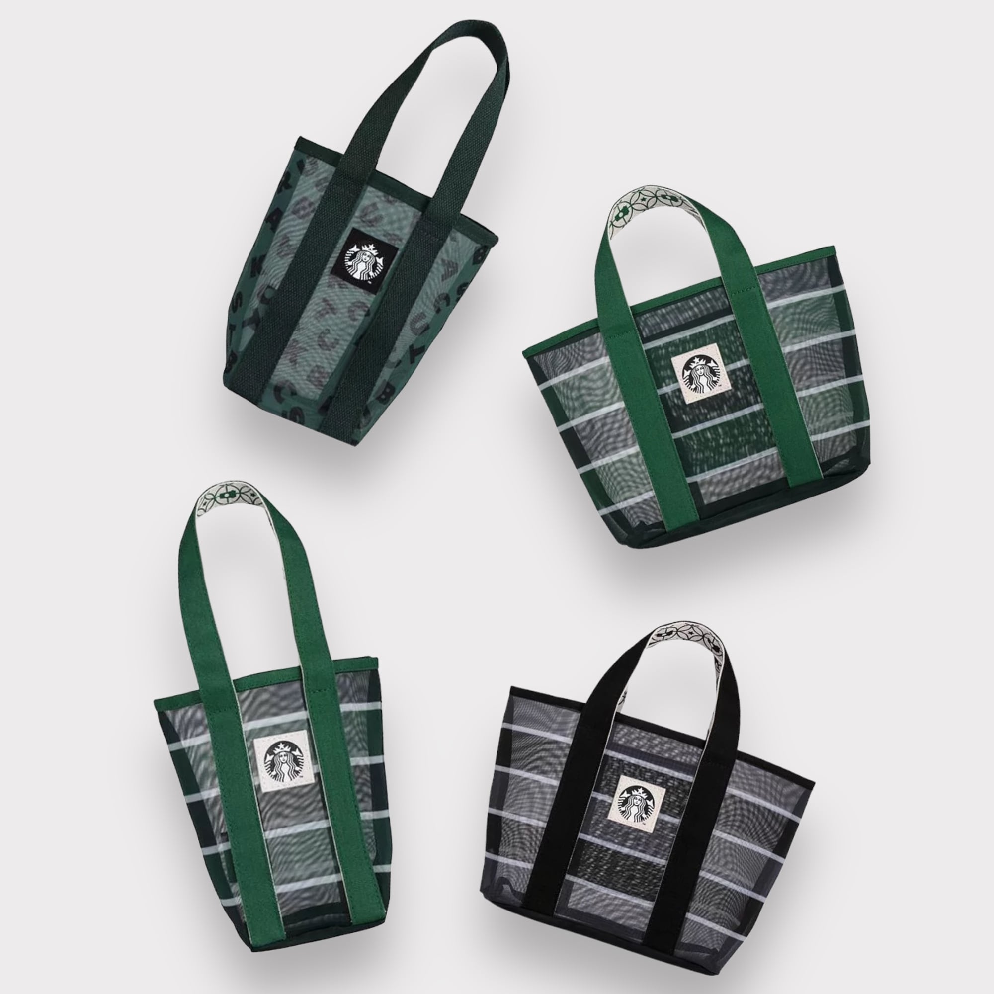 また新たにグリーンボーダー柄とスタバのアルファベット柄のドリンクホルダーバッグも加わりました。