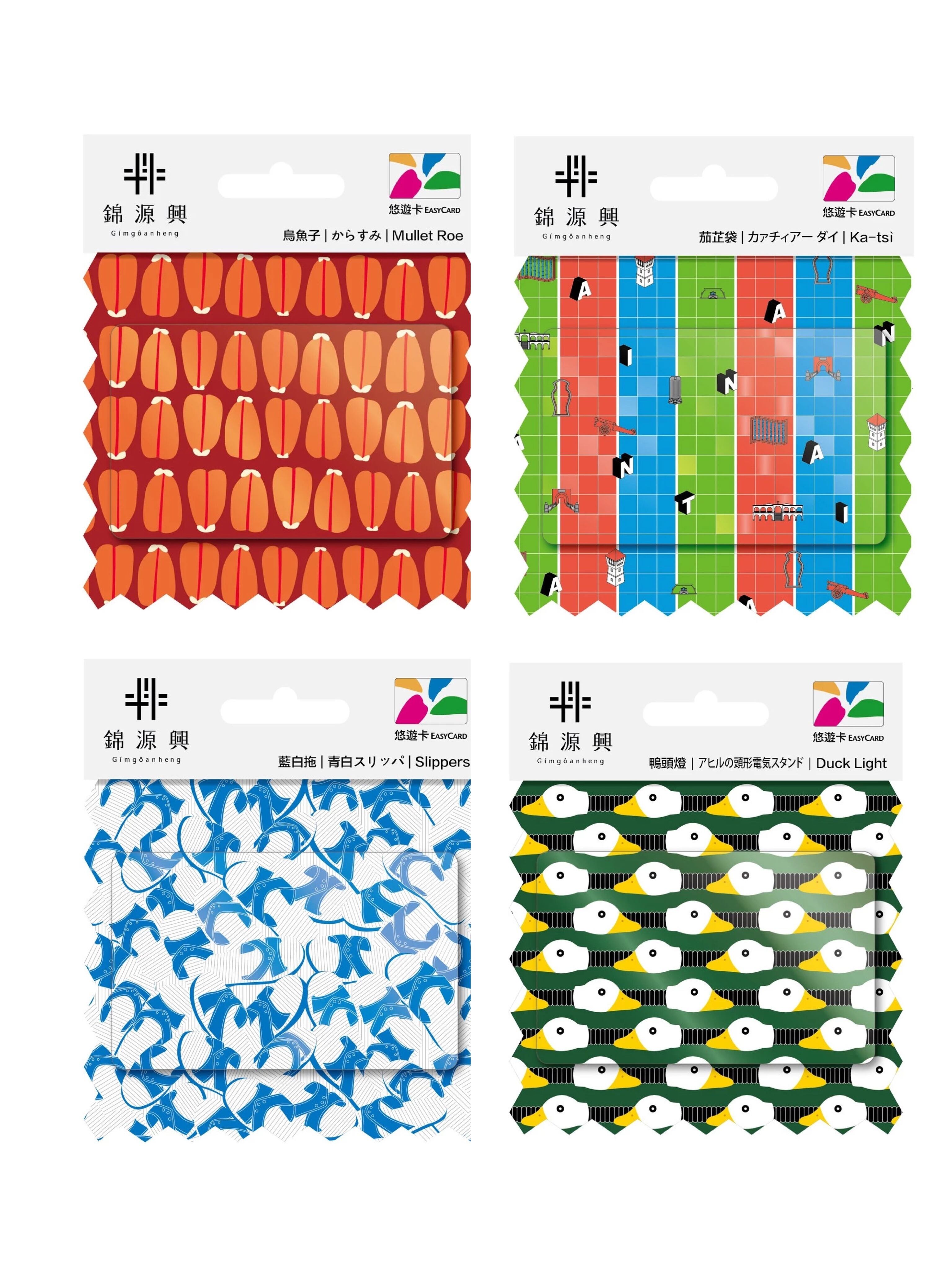 デザインはからすみ、青白スリッパ、アヒルの頭型電気スタンド、漁師網バッグの4種類で、どれも台湾を代表するアイテムです。
