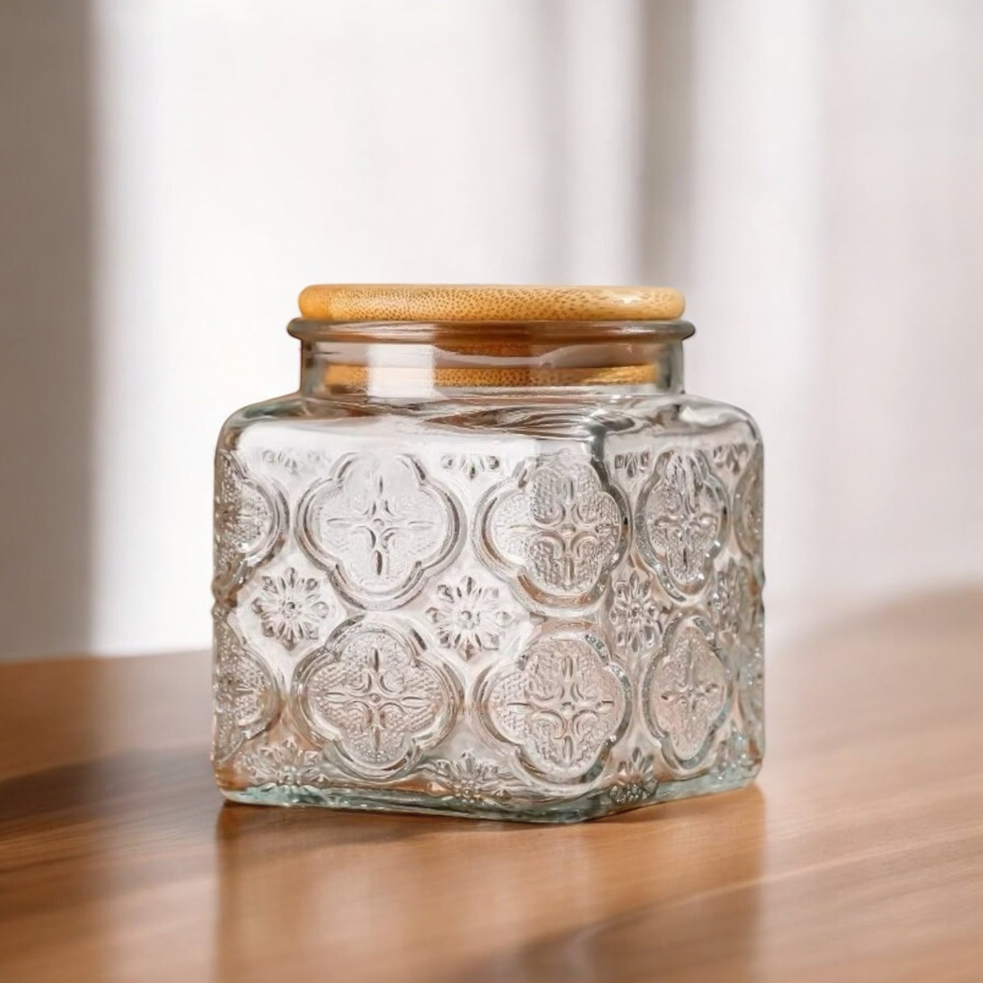 海棠花柄スモールサイズのスクエアガラス保存瓶